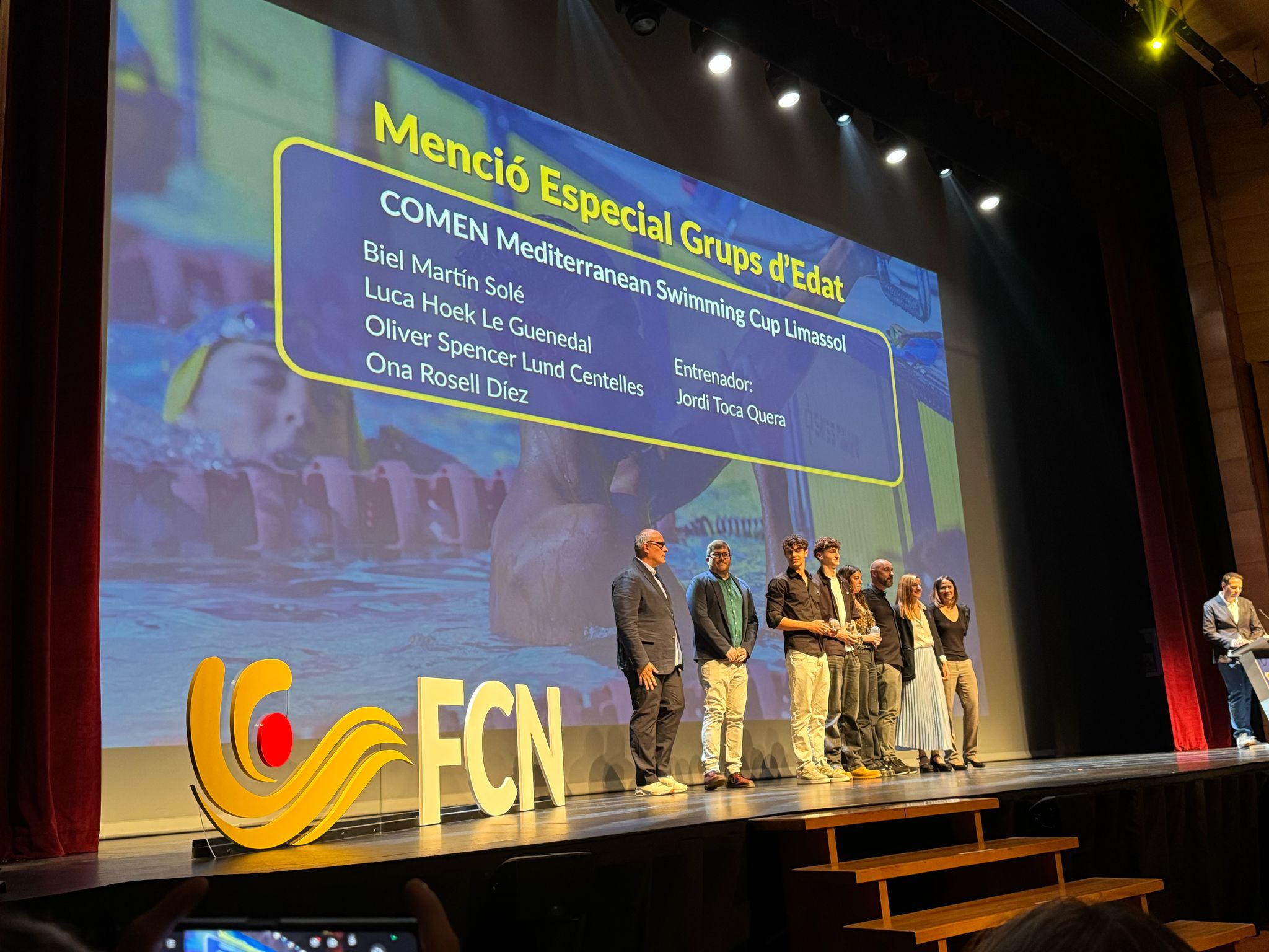 Durant la celebració, es va fer un reconeixement al nedador Biel Martín i a l’entrenador Jordi Toca pels resultats aconseguits aquest estiu passat a l’Europeu de Lituània així com les medalles individuals i de relleus a la COMEN. a Malta.