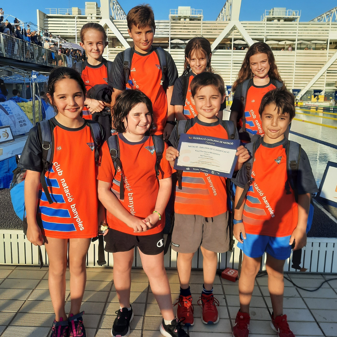 Els nedadors i nedadores més petits de la secció de natació s’han desplaçat aquest cap de setmana passat, fins a les piscines Bernat Picornell per participar a la Final Territorial Benjamí de natació.