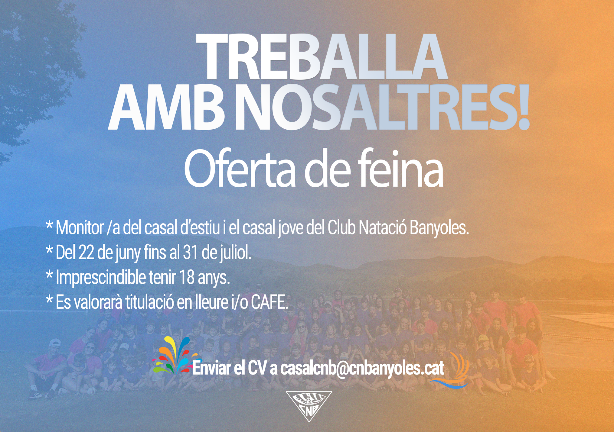 Obrim l’oferta de treball per ser monitor i monitora dels casals d’estiu del Club Natació Banyoles durant el 22 de juny fins al 31 de juliol.