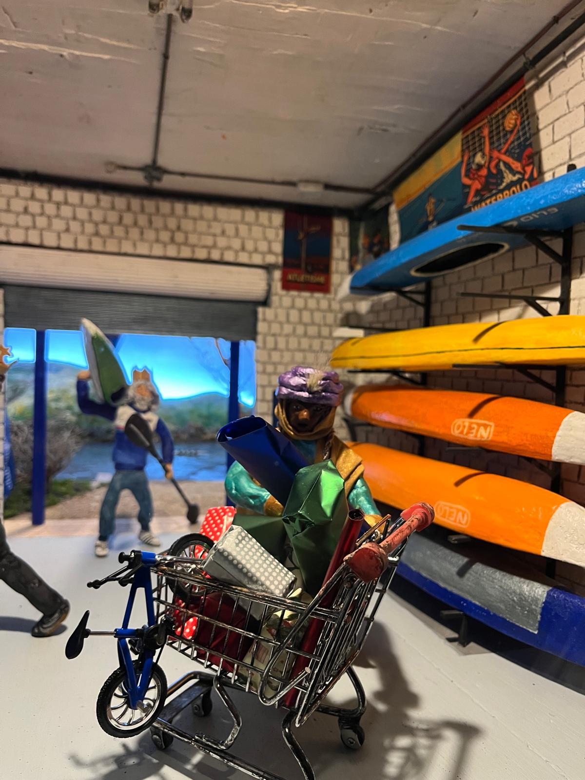 “No som expertes en piragüisme, només ho practiquem de tant en tant a l’Estany, per això no espereu una representació fidel i tècnica dels materials. Simplement hem volgut que aquest diorama fos un homenatge al Club, i que quedessin representades les vuit seccions. El pòster que hem penjat són imatges de la web del Club transformades en ‘Comic Art Pop’ amb IA. També hem volgut destacar l’entorn privilegiat on es troba el Club. Potser ho hem aconseguit, potser no… Hem intentat ser el màxim fidels a la realitat: vam entrar al Club i vam fer fotos dels racons per poder representar-los. Hi trobareu objectes reals i altres que hem afegit per representar tothom. Ens ho hem passat molt bé fent-lo i pensem que reflecteix força bé un dels racons del Club. Pels que no hi heu entrat mai, us en podeu fer una idea; i pels que el coneixeu, esperem que us agradi i no sigueu massa crítics.”