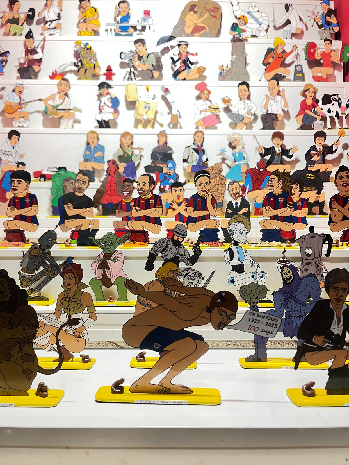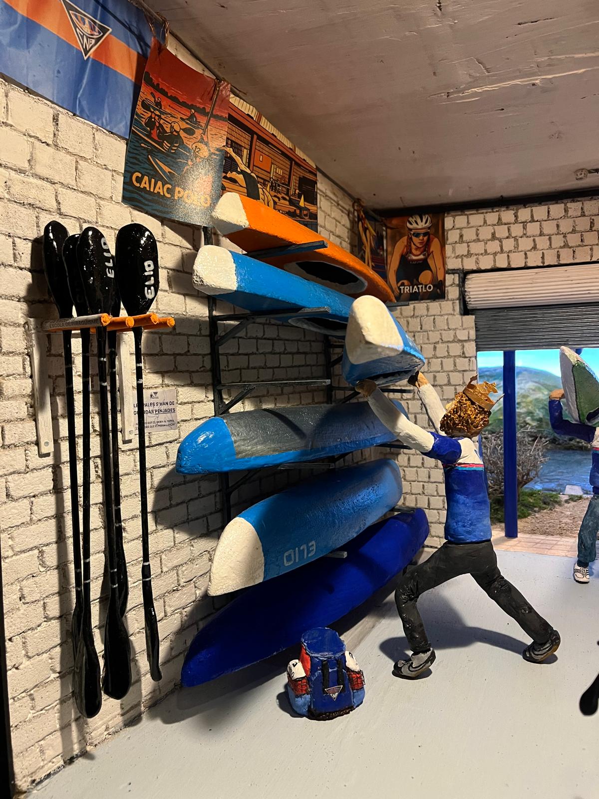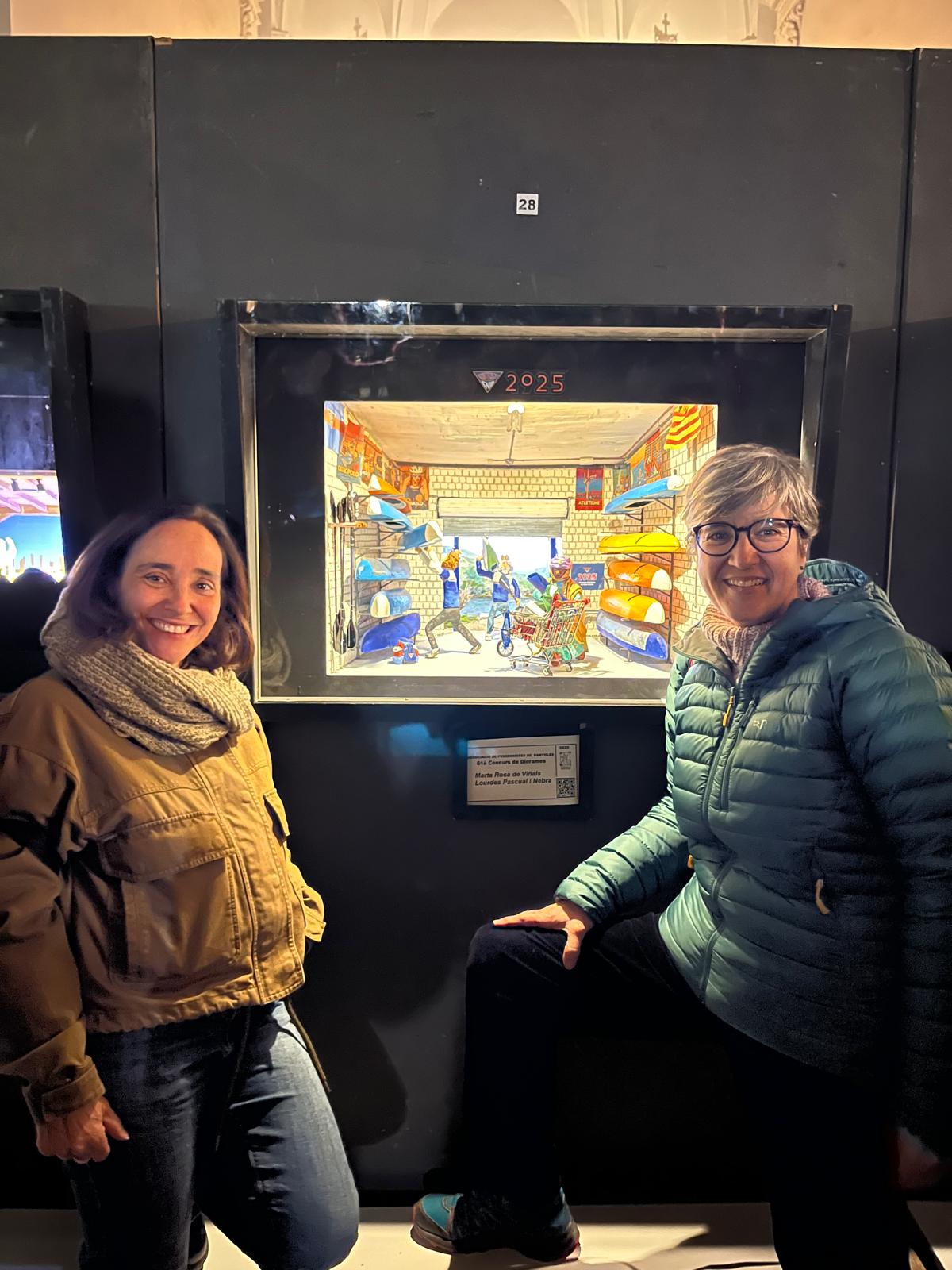 “No som expertes en piragüisme, només ho practiquem de tant en tant a l’Estany, per això no espereu una representació fidel i tècnica dels materials. Simplement hem volgut que aquest diorama fos un homenatge al Club, i que quedessin representades les vuit seccions. El pòster que hem penjat són imatges de la web del Club transformades en ‘Comic Art Pop’ amb IA. També hem volgut destacar l’entorn privilegiat on es troba el Club. Potser ho hem aconseguit, potser no… Hem intentat ser el màxim fidels a la realitat: vam entrar al Club i vam fer fotos dels racons per poder representar-los. Hi trobareu objectes reals i altres que hem afegit per representar tothom. Ens ho hem passat molt bé fent-lo i pensem que reflecteix força bé un dels racons del Club. Pels que no hi heu entrat mai, us en podeu fer una idea; i pels que el coneixeu, esperem que us agradi i no sigueu massa crítics.”